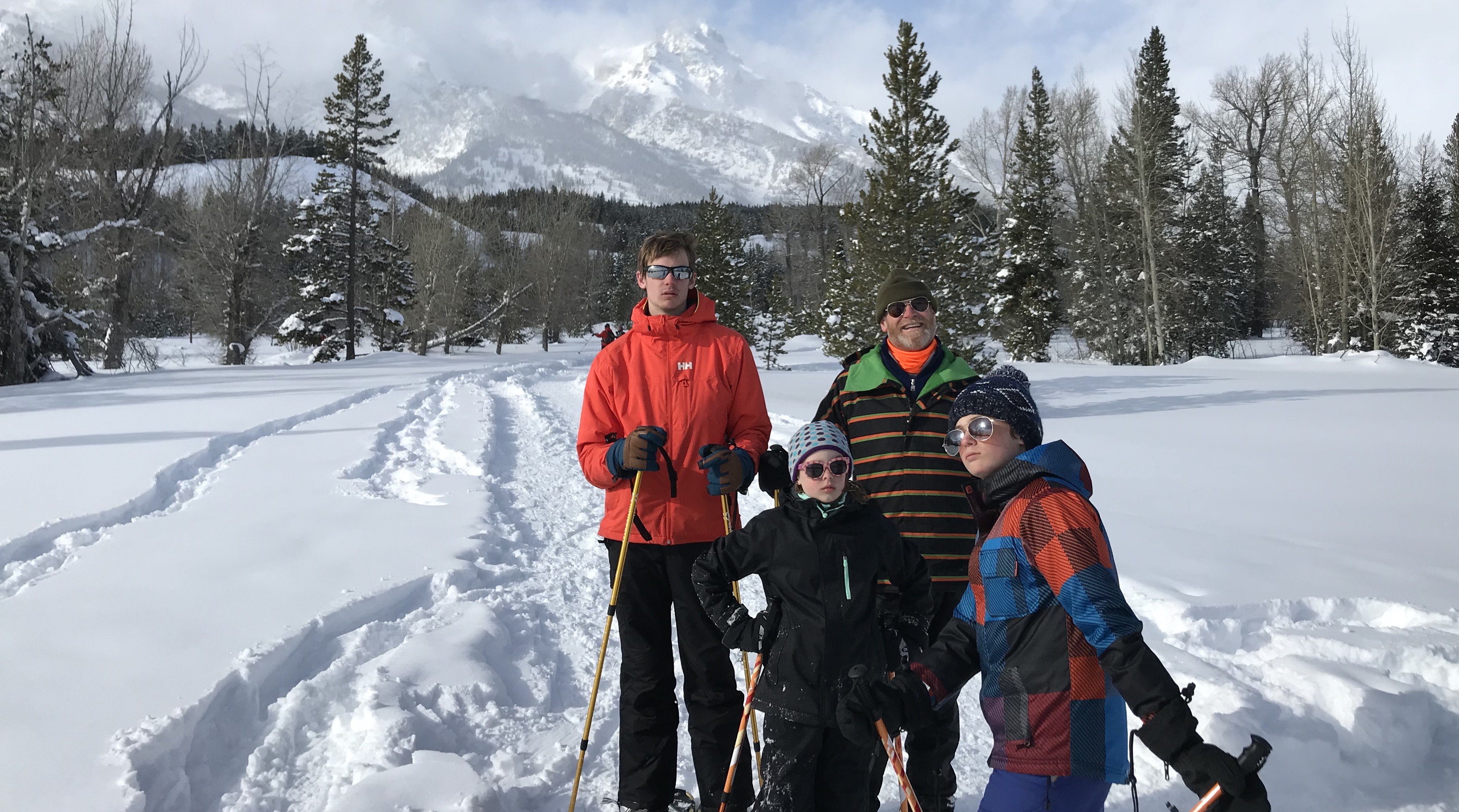 We couldn’t help ourselves—we had to sing that song as we rolled into town. Today we went snowshoeing in Grand Teton National Forest. The kids were skeptical, until we made tracks in fresh powder and climbed up a hill through the trees and jumped off an outcropping. I love this activity because the gear is simple; all you need is snow; and you stay warm because you are constantly moving.